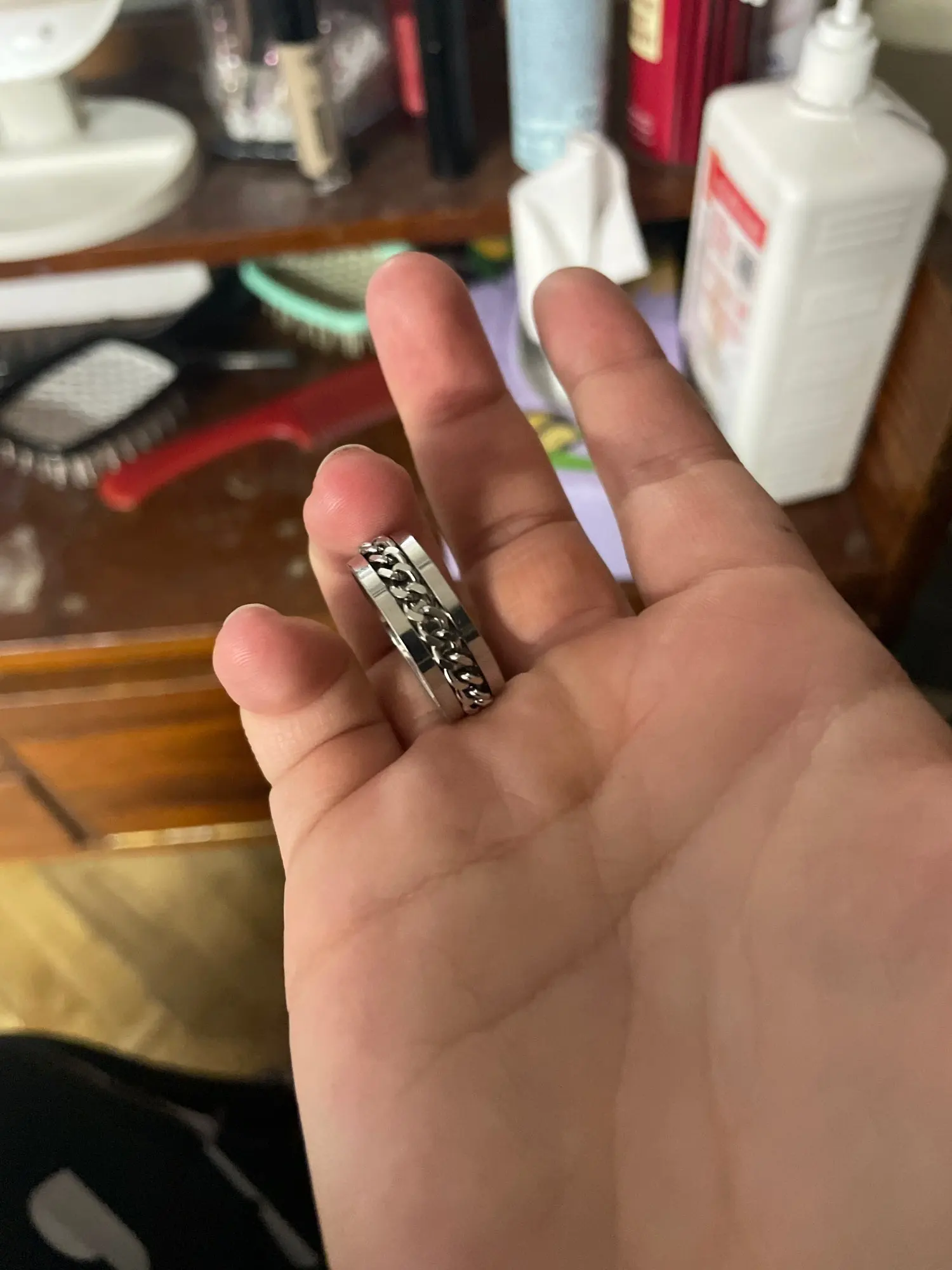 my husband bought this for me as a promise ring, I have adhd and like to play with things so tye chain adds a special kick to the ring