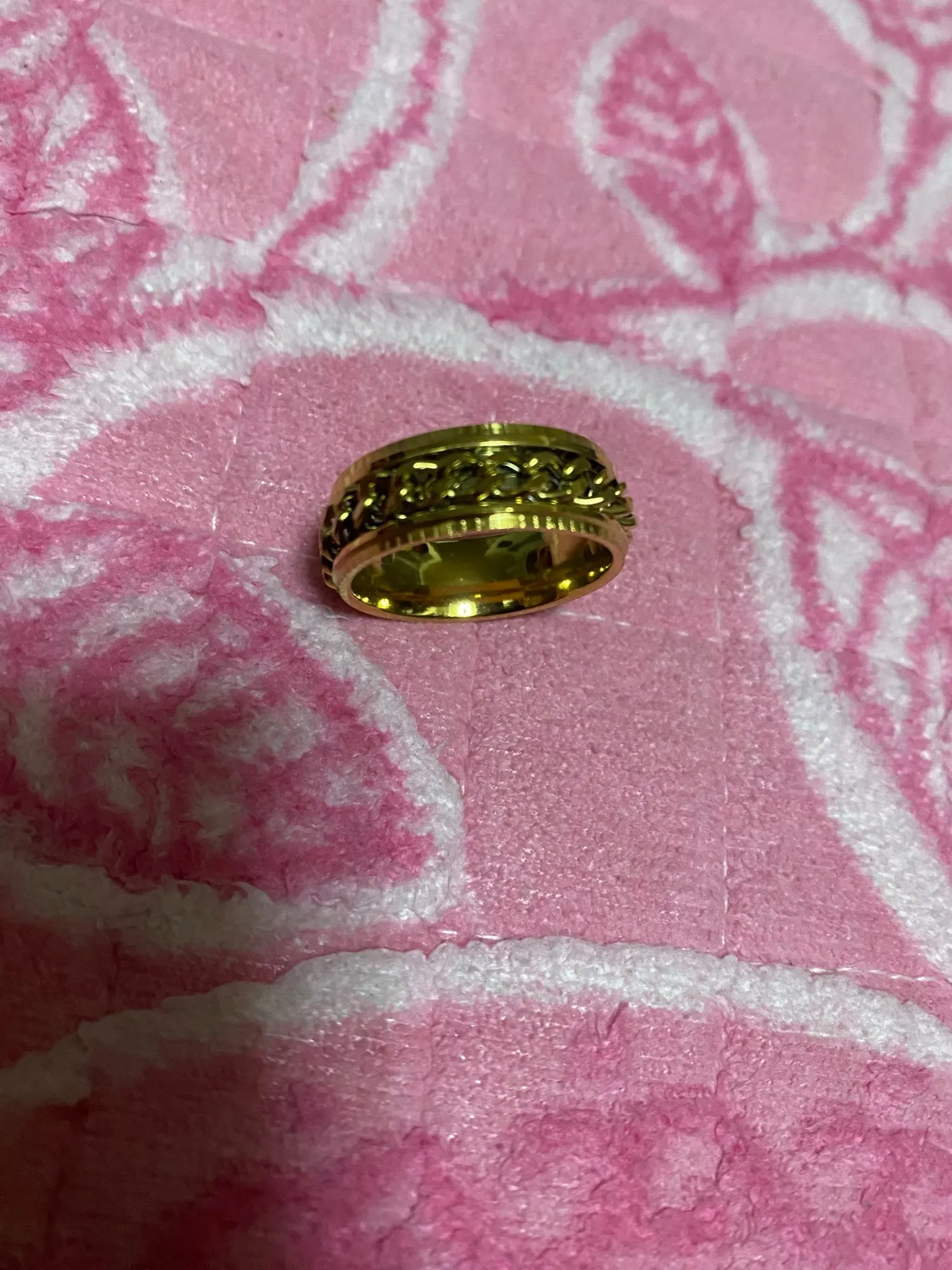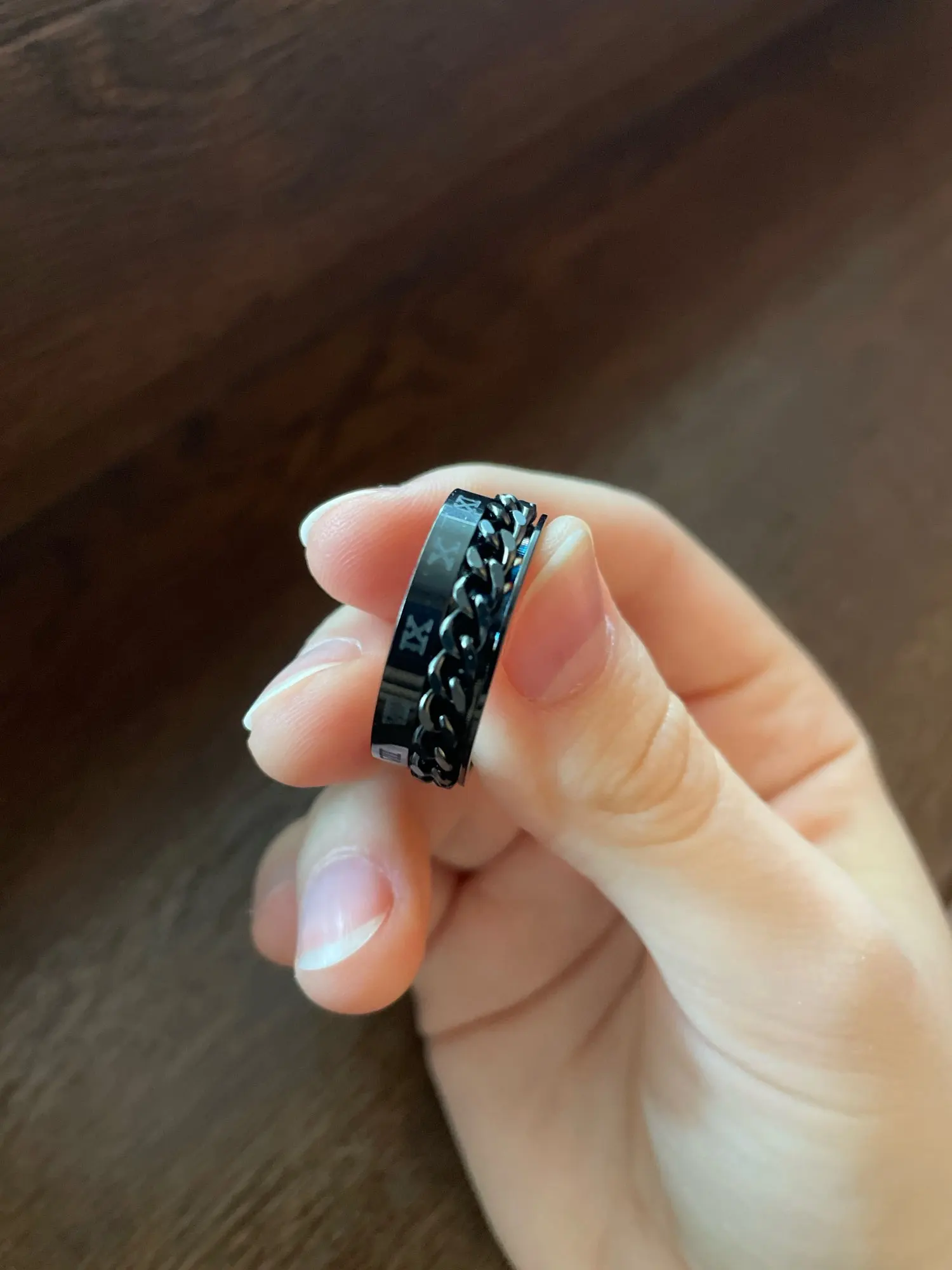 The ring feels pretty smooth overall, but spinning the chain has a weird feel to it. At first I didn’t like the texture or sound, but it definitely grew on me. As for the cravings on it, they aren’t that visible, but are still pretty.